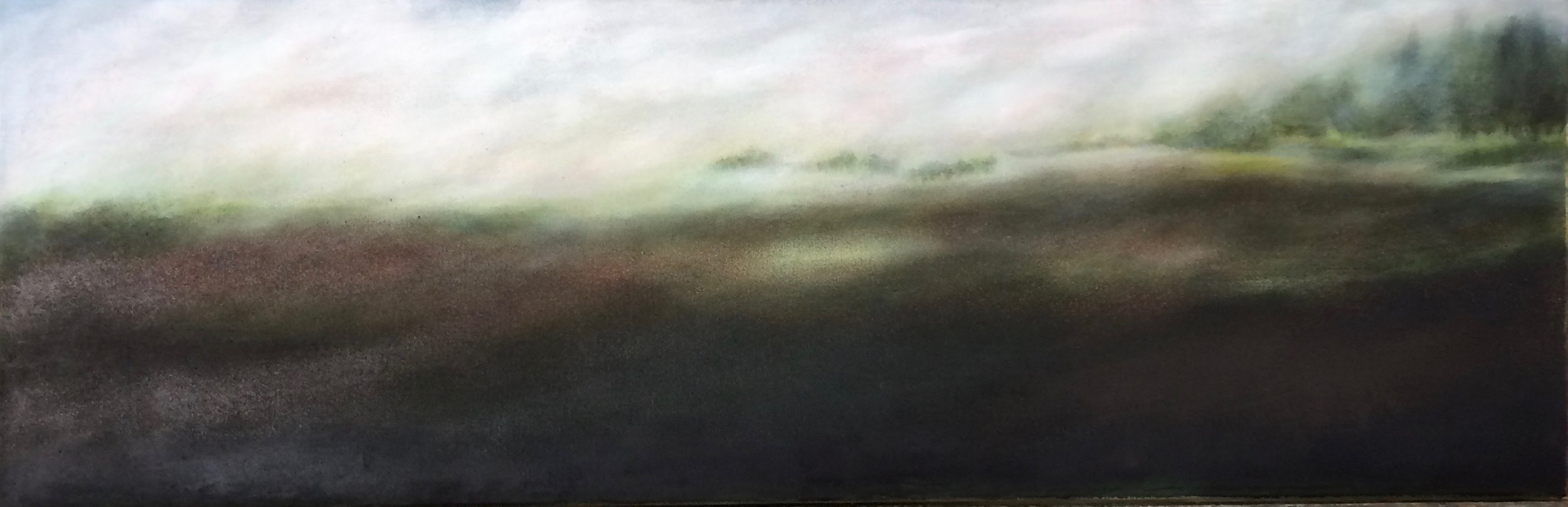 Casein, beeswax, shellac, pigment, casein gesso on wood panel, 4x10 in, 2010